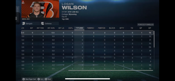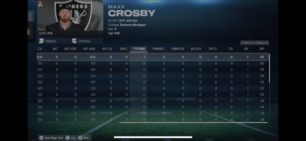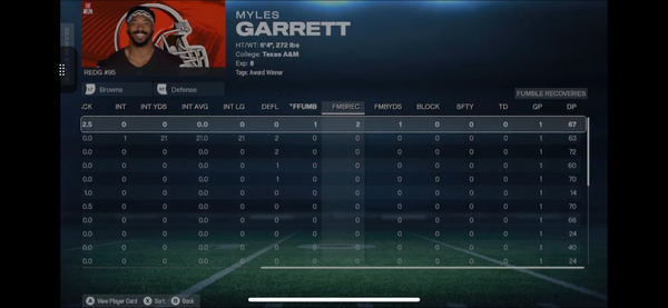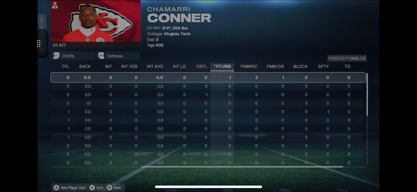 - Fumble recoveries will only be given to players in multiples of 2. (I.e. if a player ACTUALLY had 1 fumble recovery, they will be given 2.) I know this because of the following images, If you simulate the first week of the season, there will not be a single player with 1 fumble recovery. There will only be players with multiples of 2.