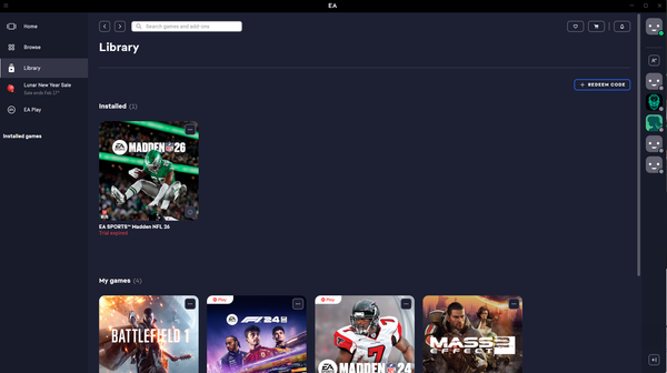 yhyh0707Rising Newcomer11 hours agoI have ea play Membership and my free trial expired, but it's in ea play now.I have ea play Membership and my free trial expired, but it's in ea play now.But I can play Madden 26.