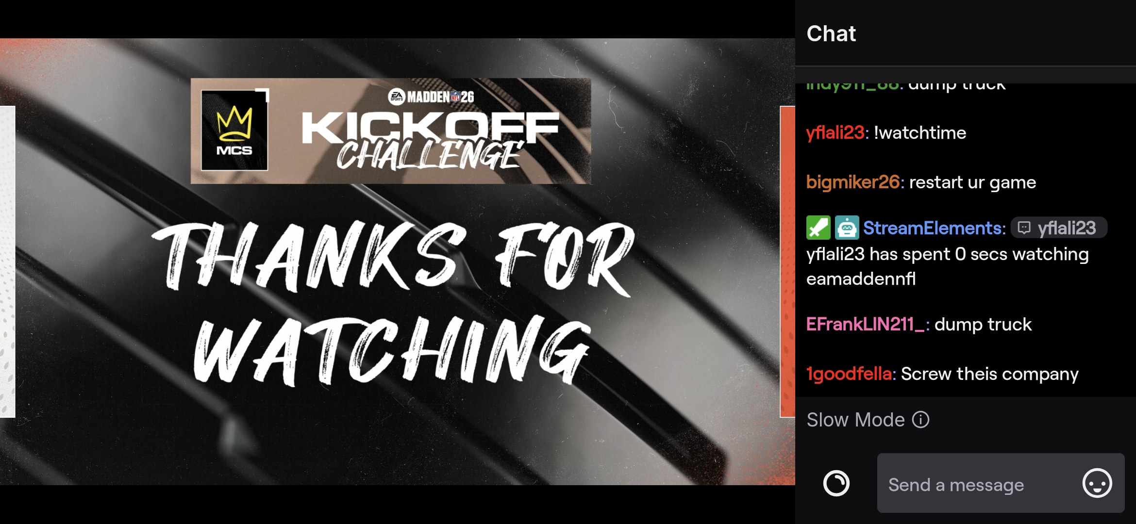 I watch the Madden Kickoff Challenge stream today to claim my Kyle Hamilton for 2 hours and 30 mins. I made sure ahead of time all my accounts were linked (Twitch, EA, PlayStation). I just logged in after work and nothing is here for me to claim. Fix this now because this is ridiculous. I spent two hours for this and got nothing.