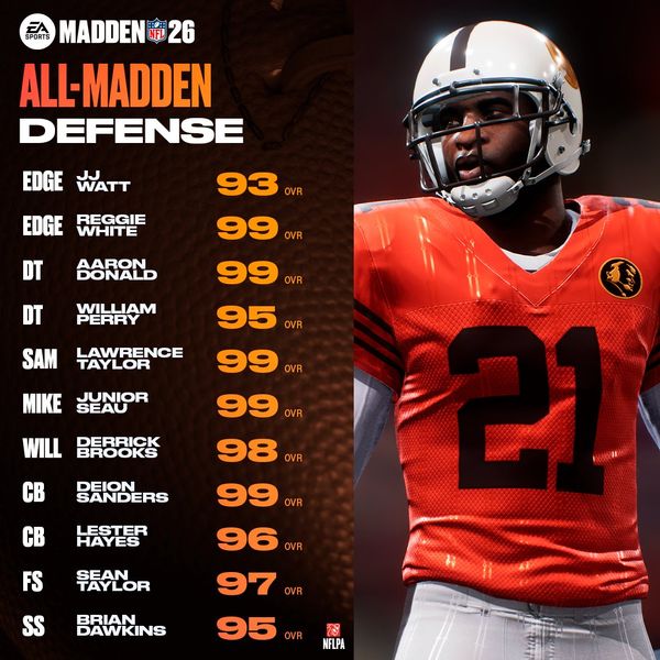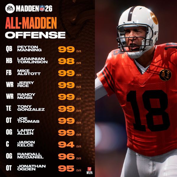 Full rosters here: All-Madden Legends and NFL Superstars Teams