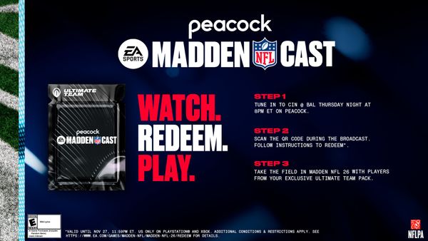 • For the first time, earn in-game rewards for watching the Madden NFL Cast on Thanksgiving night on Peacock!