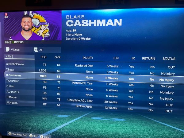 And I’m on the Vikings. Blake Cashman and Aaron Jones are freshly off of Injury Reserve. I am unable to take them off of injured reserve and I cannot view them in the depth chart and they cannot play. They are pretty much gone for the season/not on the team. This is very obviously a glitch, I’m very aware of every way to get this problem fixed, but it’s just unfixable. I cannot play my franchise until this issue is fixed. Please fix it ASAP. Does anyone else have this problem?