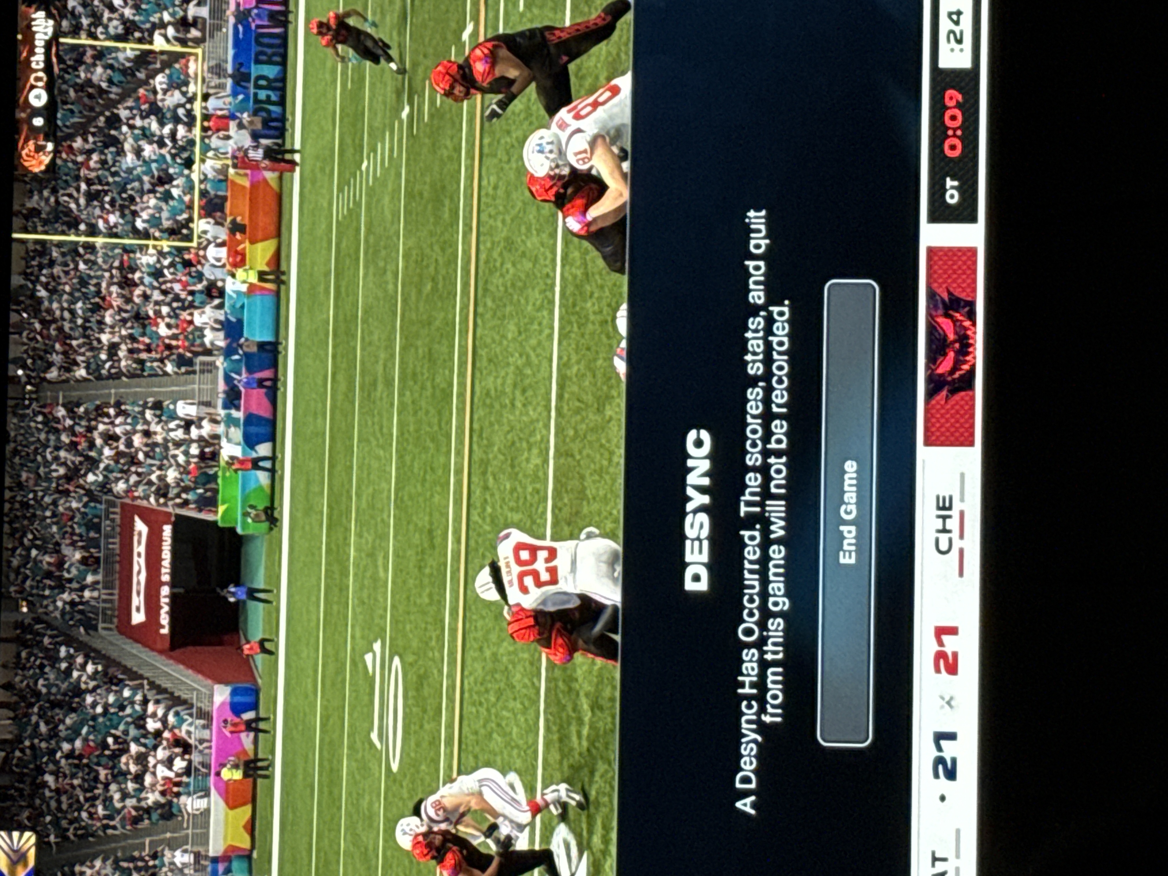 I keep getting Desync everytime I’m about to win a Super Bowl in mut… happened to me 4 times already, is that a glitch ima need my money back I put into mut 💯