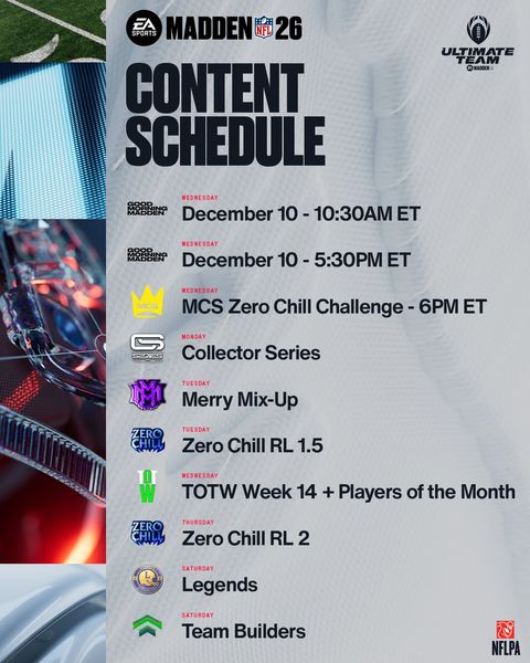 NatureBoy2323Hero+1 month agoExpected Content Schedule For Madden Ultimate TeamTwo GMM streams + the MCS Zero Chill Challenge on Wednesday at 6PM ET!