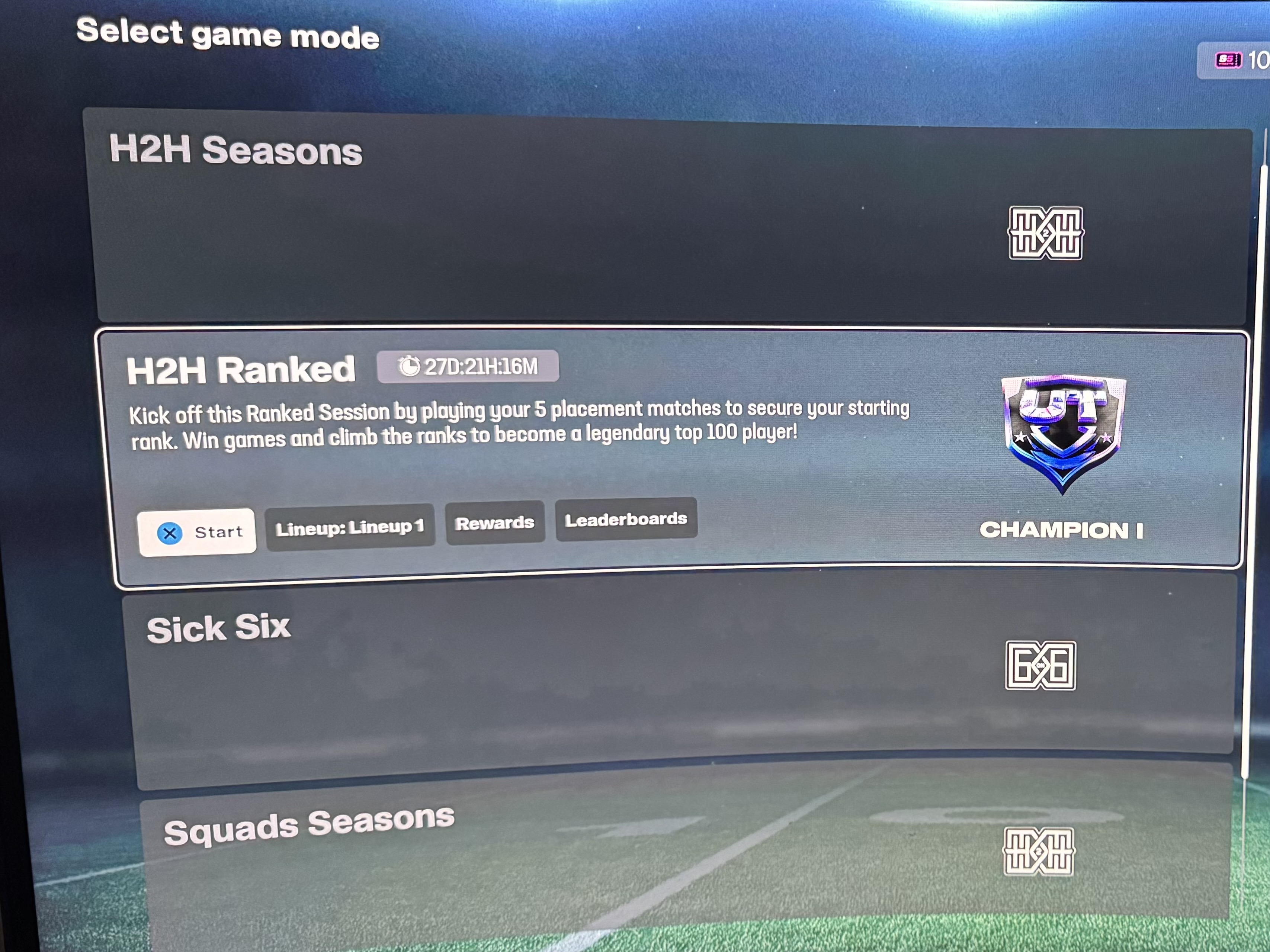 It has been 5 hours and I still haven’t received H2H ranked reward. Currently in champion tier and still haven’t received a finish event selection although the session timer reset. All I can see is “start”.