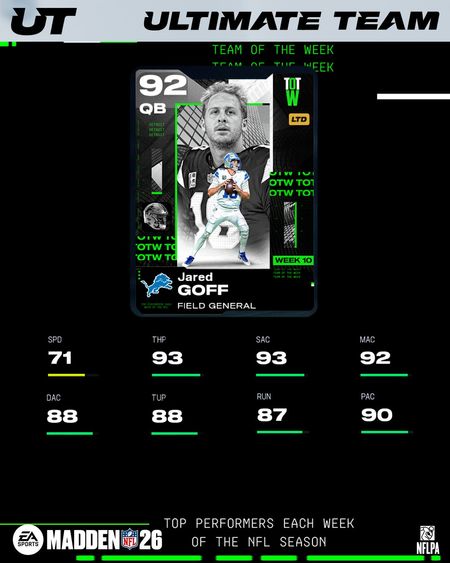 Jared Goff and Danielle Hunter get a perfect 10/10 in week 10! Dropping later today in Madden NFL 26!
