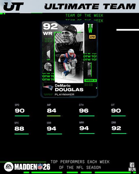 NatureBoy2323Hero+4 months agoMadden Ultimate Team Of The WeekDeMario Douglas and Joey Porter both came up clutch to keep their teams at the top of their divisions! Catch the full TOTW drop on GMM later today at 10:30AM ET! https://www.twitch.tv/eamaddennfl