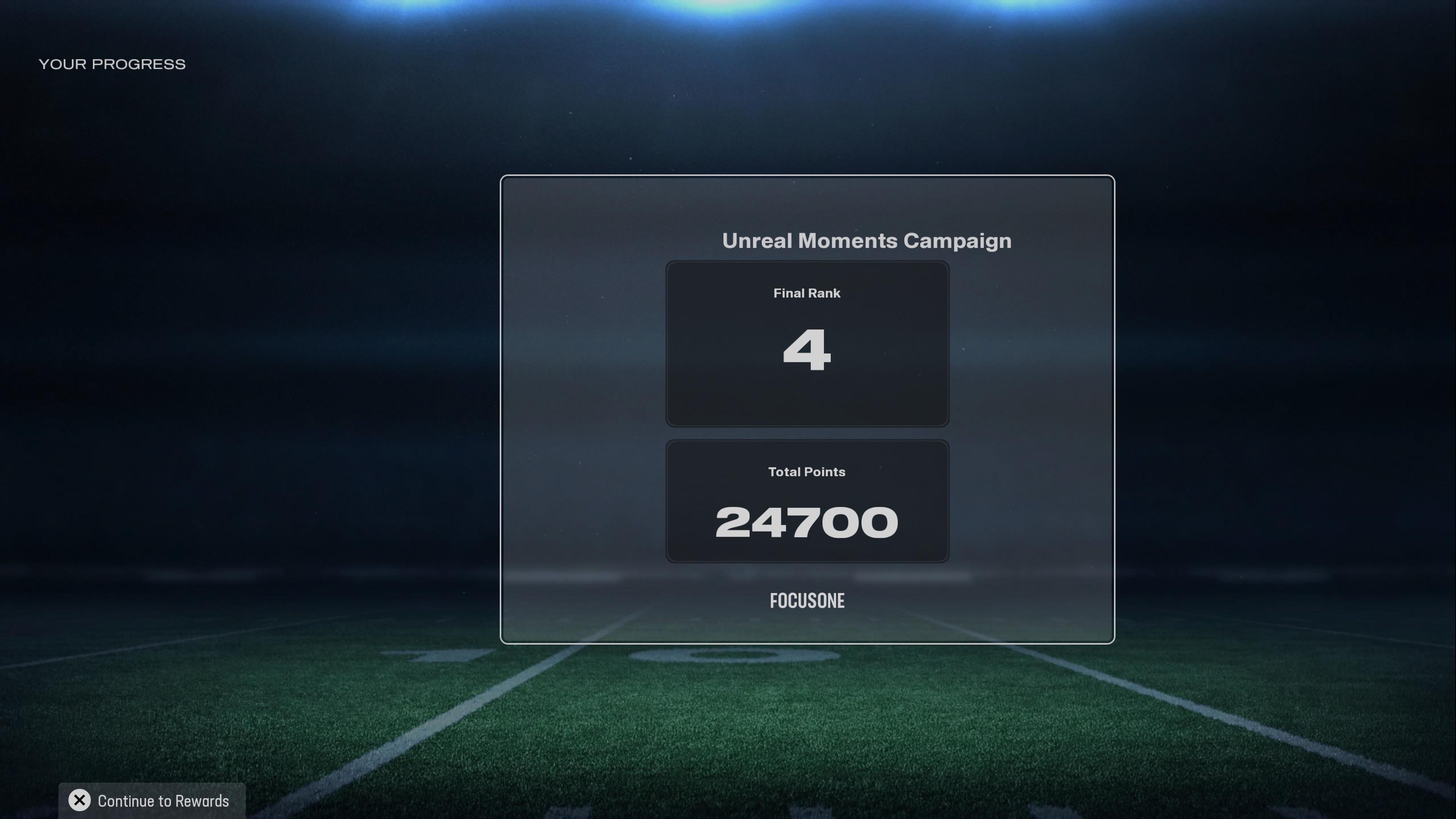 My name on Madden is GangYaHeard and I got first place in the unreal moments campaign and only received a 4k quicksell.....