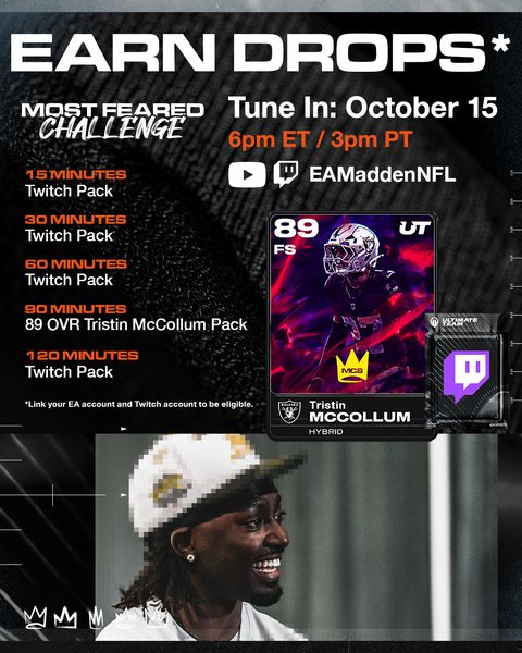 Tune in to the MCS26 Most Feared Challenge to get an 89 OVR Tristin McCollum designed in collaboration with Henry77_