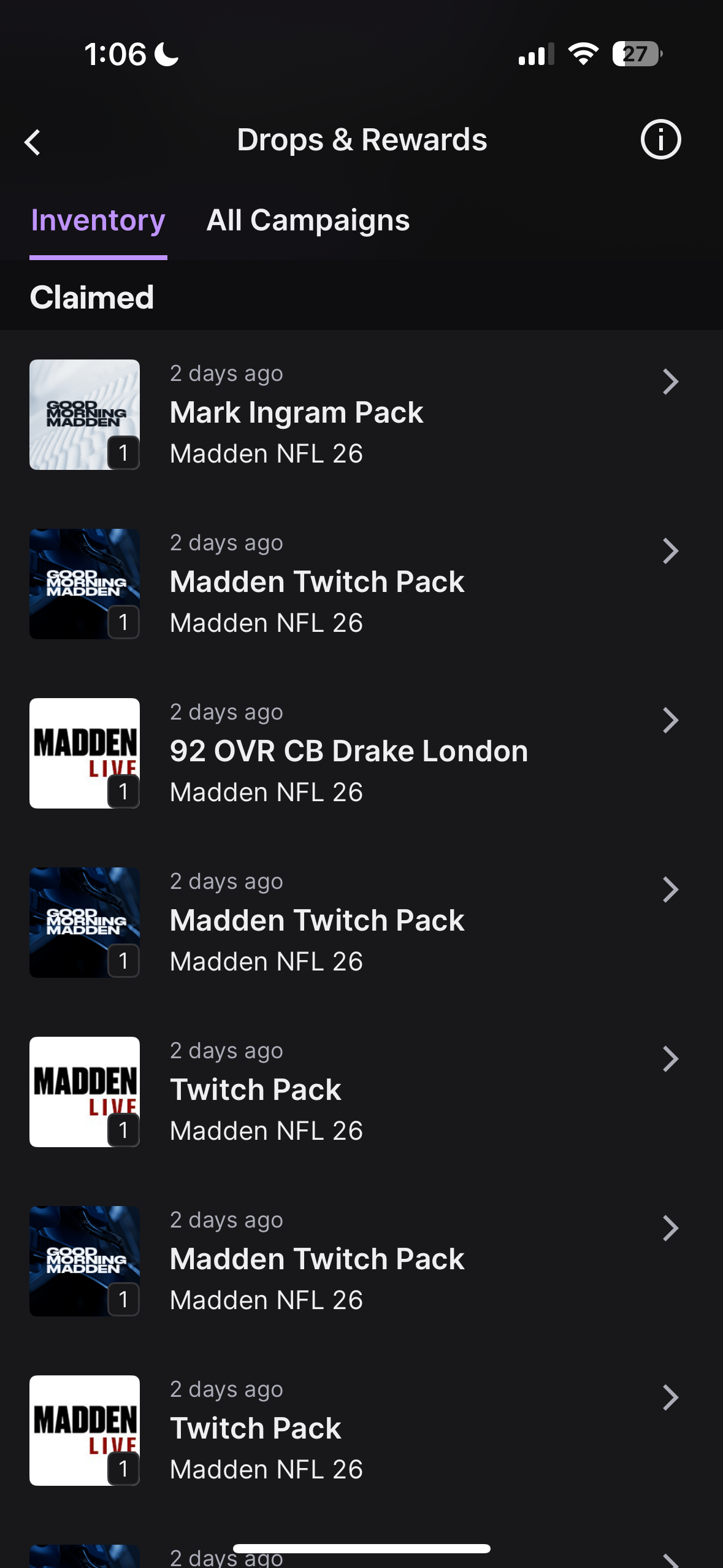 Recent DiscussionsNot getting credit for playing the cpu events I play the events ( cpu and h2h) but I never get credit for them in my season event pass nor does my event pass go up. Usually my event pass does go up just not this season but I never get credit fo...90 team builder packs I did the challenges for the new team builders release, and when I went to open the pack for the 90 I got the 87 pack once again and now im unable to play the challenges to get another pack for a pla...ZC: The Season of Giving H2H Missing Champion Token I beat the event again and I got the snow but no Token. Can you all look in to this so I can receive my token. Pictures attached below ⬇️ Twitch Drops Haven't worked since Madrid MCS I haven't received any Twitch drops since the Madrid MCS last month. I'm missing multiple packs, the Ingram upgrade, and the Waller MCS card. Already filed two support tickets, and all they've told...Madden Ultimate Team Rivalries Rivalries flies back into Madden NFL 26 later today with Devon Witherspoon!