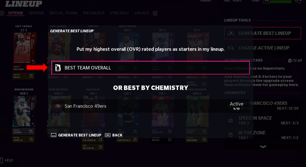 - Create a New Lineup & Change to BEST TEAM OVR
