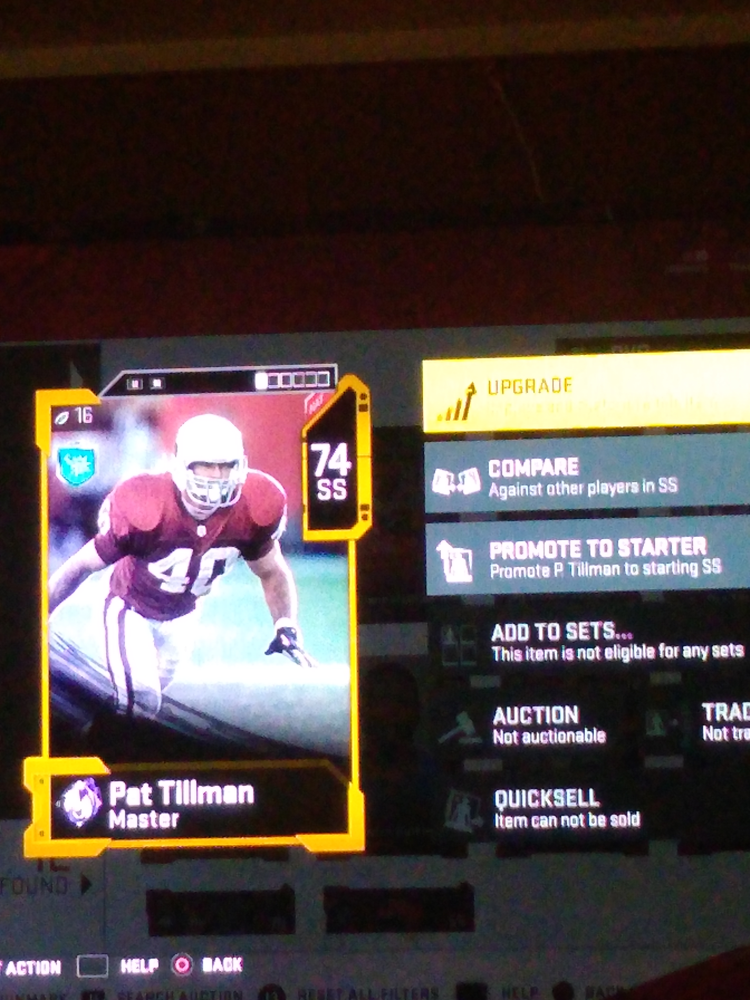 What MUT level are you? Unlike last year such as with Ryan Shazier, this year you earn the upgrade tokens through MUT Level progression. If you keep leveling up you should get the tokens for Pat Tillman. 👍