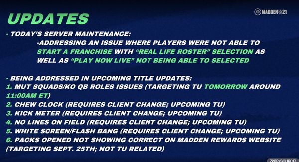 Tweet confirming they are aware of it: https://twitter.com/MaddenNFLDirect/status/1298347082013704193