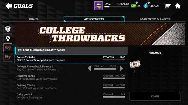 I've done that..... however I didn't realize there were events to collect... so I didn't go to collect until I had completed more than 10 events. But as you can see the counter is at zero and will not let me collect. However, as you can see, I have compete more than 10 and was allowed to collect the " complete 10 College Throwback Events."