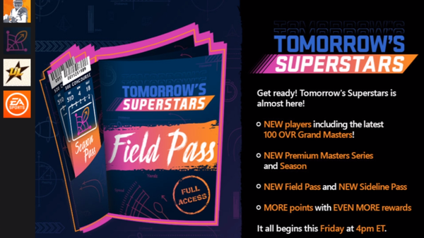 Awesome stream today but the one tonight at 7PM ET should be even better (Madden 20 goes first and Madden Mobile follows up). Nick previewed the Field Pass and some small details on the upcoming promo that's dropping Sunday. The recording of today's stream is worth a view and can be found here.Quick Recap: