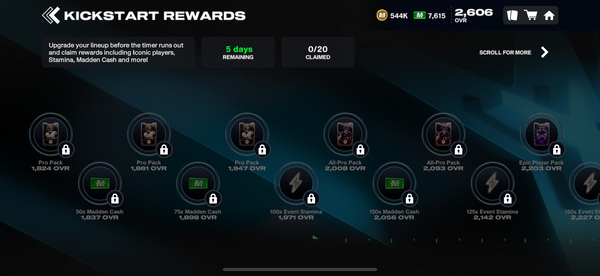 Alright, I am now at 3050 Ovr and my Madden mobile 26 kickstart rewards is still locked, I am IOS user and if EA doesn’t fix this issue now for me snd everyone else, I will be deleting game and reporting to everyone how terrible EA is, unacceptable!!!