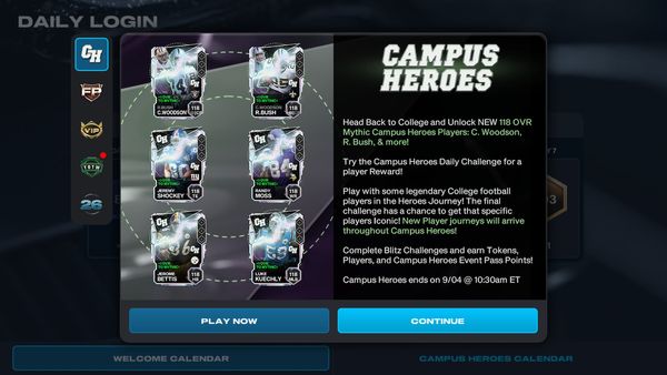 Taking inspiration from a storied history of College Football, the Campus Heroes event provides players with not only a unique way to experience the thrill of reliving some of the coolest moments, but some great chances to acquire the player cards of these celebrated athletes, and a whole lot of other Campus Heroes swag as well!