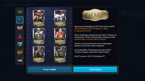 GOAT launched with a big Player drop. The next Player drop will be on 12/10 and introduce new Journey challenges.