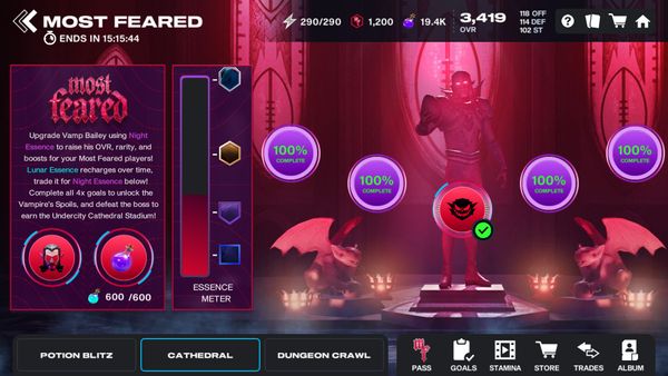 - Collect Night Crystals to upgrade Vamp Bailey’s OVR and rarity, all the way from Uncommon to Mythic!