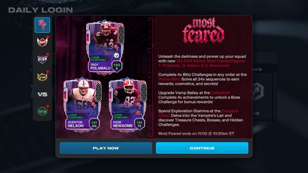 The main goal of the Most Feared event is to complete challenges and receive rewards in order to level up Vamp Bailey into the ultimate touchdown scoring monster!