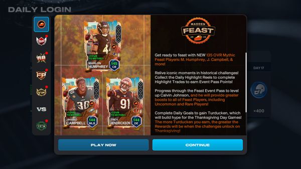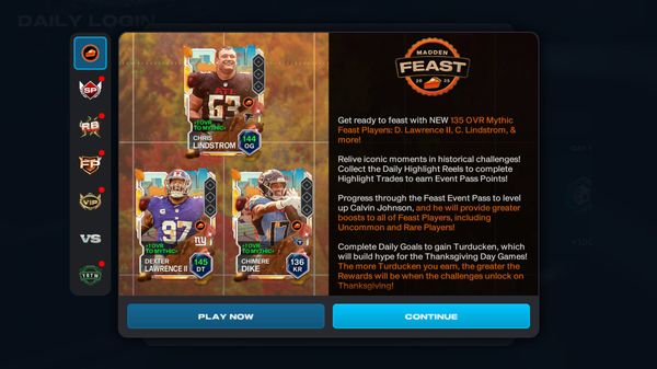 Earn yourself some Turducken to upgrade your rewards in the upcoming Thanksgiving Day Challenges. In the meantime earn additional rewards from challenges based on classic Thanksgiving matchups and more.