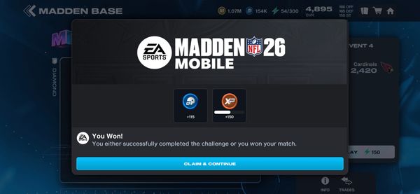 For about one month I have not been receiving my Training Points correctly. I am a Diamonds player. In Madden Base, Daily Arena and other game modes I receive much fewer Training Points than what the game shows as the reward. For example in Daily Arena the reward was displayed as 1716 TP but I only received 397 TP. This happens consistently and not just once. My Diamonds benefits should be active but the bonus Training Points are clearly not being applied. I have restarted the game and checked my status but the problem still persists. Please investigate this issue and explain why the promised Training Points are not being awarded. Thank you.