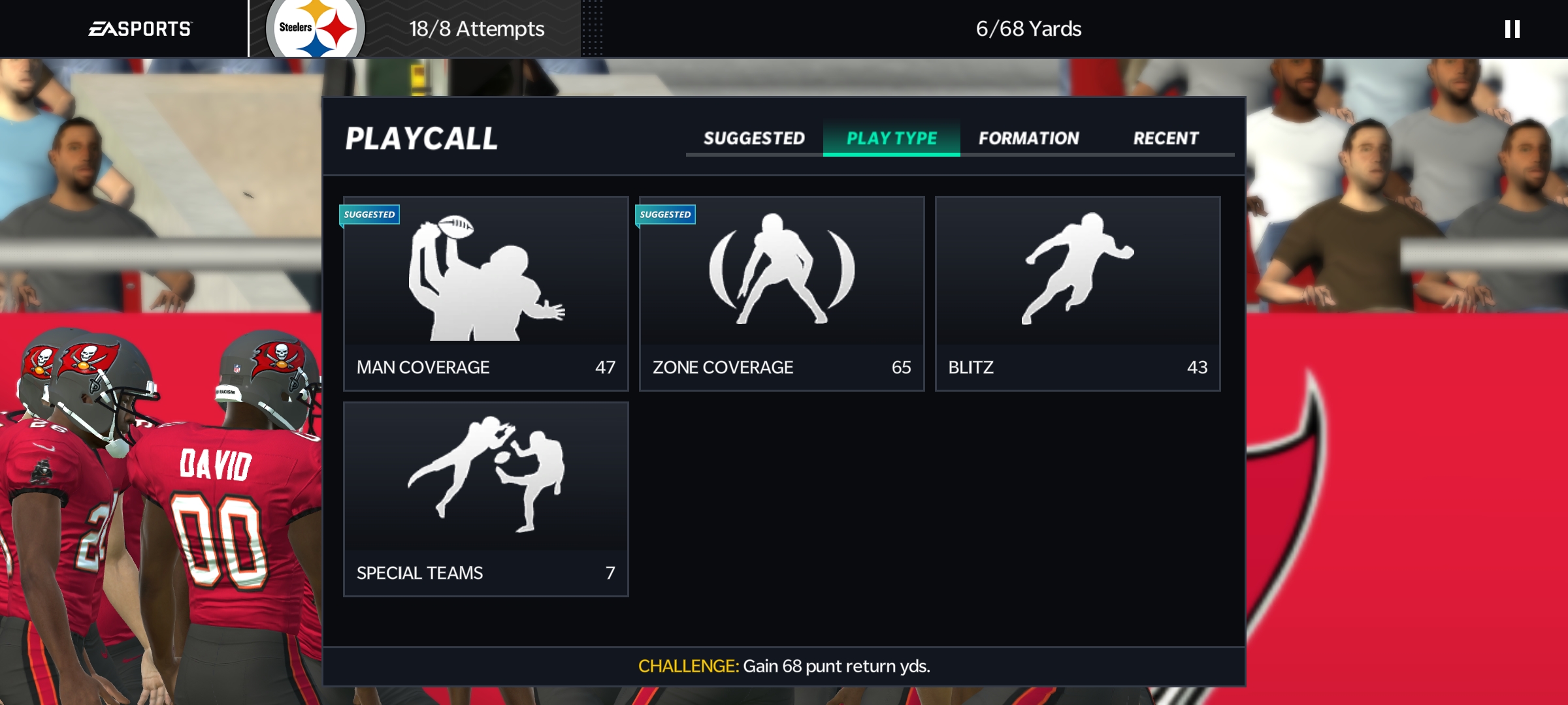 On one uf the UL2 challenges, it says the goal is to get 68 or so punt return yards in 8 tries. But the other team is not punting, just running.....and I'm on attempt 18/8 in this neverending glitch. Please fix as I have already spent money with the hopes of getting my maxed Kearse! Thanks ahead of time guys.