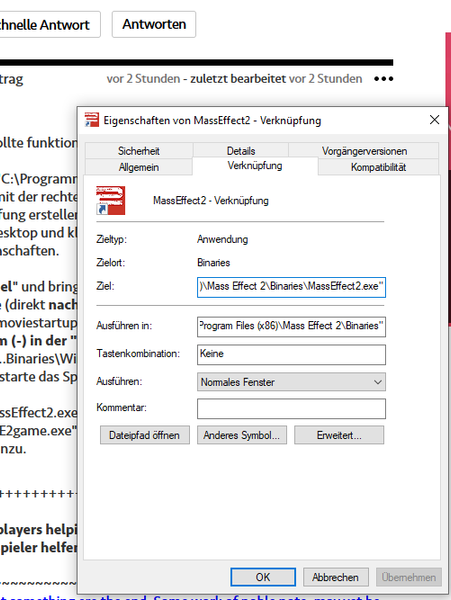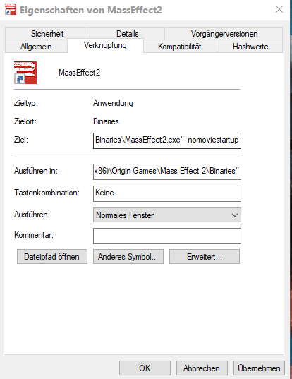 Ja, mein Fehler, richtig ist: Binaries\MassEffect2.exe" -nomoviestartup