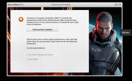 Ich habe Mass Effect 3 über die EA App runtergeladen und installiert. Beim Start will er immer, dass ich mich bei Origin anmelde. Aber ich habe gar kein Origin Konto. Dann erscheint ein Bu...
