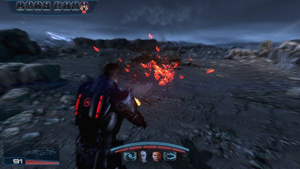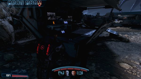 Hier Beleuchtung der Kisten und Shepards Panzerung, Rücken (Beleuchtung stark verschoben)