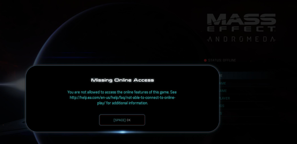 • Mass Effect Andromeda - "Missing Online Access"