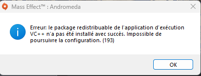 quand je veux réinstaller via le launcher ea de me andromeda, j'ai deux messages d'erreur a la fin.