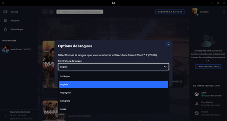 Mais le jeu n'est toujours pas en français. Je ne sais pas comment changer la langue de l'anglais au français.