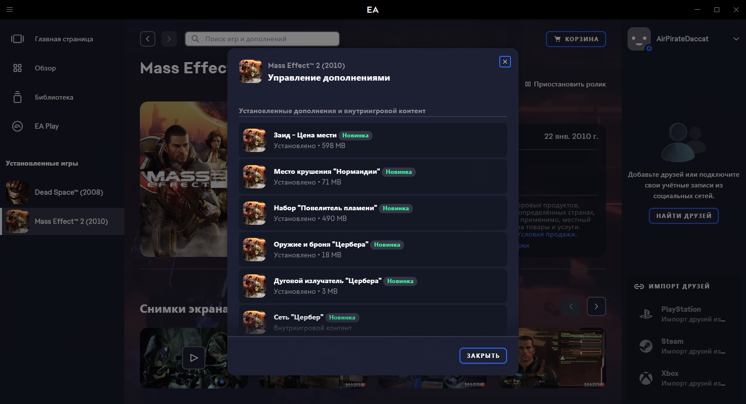 - @AirPirateDaccat Здравствуйте! Возможно, часть контента была вырезана, причины тому могли быть тем, что они были не особо популярными. Проверьте дополнения по ссылке, там есть все доступные дополнения для ME2. https://help.ea.com/ru/help/faq/dlc-for-classic-games/