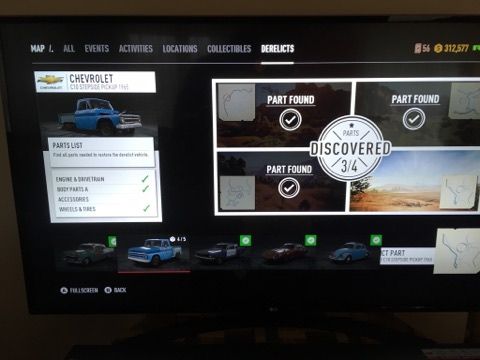 Summarize your bug 3rd derelict (accessories) is missing from Chevrolet C10 derelict. I have picked up the derelict for one, but then it has not been added to the garage - it still shows as a derelict to be found, but when I go back to the spot, the derelict is not there.