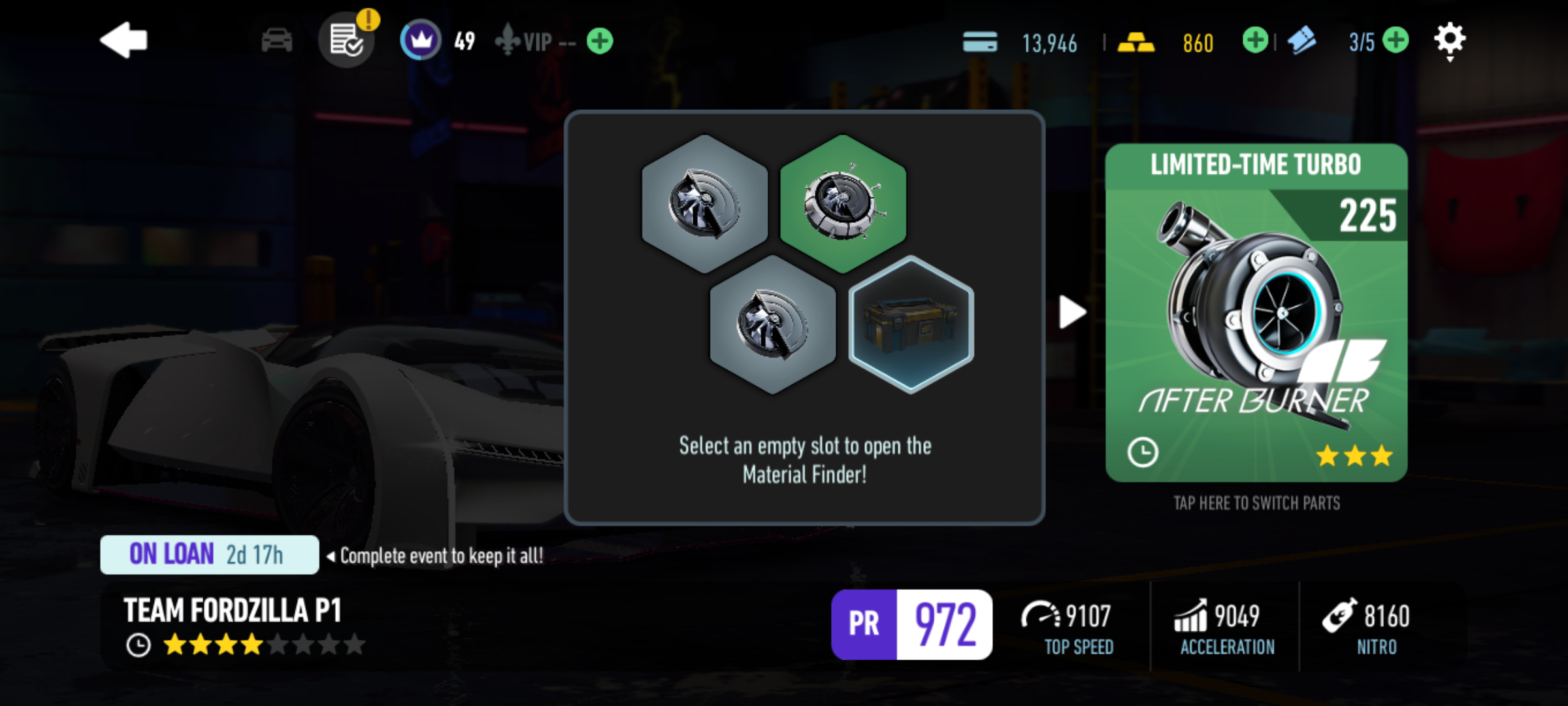 Attaching the screenshots of the exhausted parts slots for your reference. My race has come to a standstill right now, unless l spend real cash. This seems to be very unfair for the players as they cannot proceed in the race in Fordzilla.😌