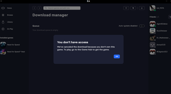 You should talk to EA support since this is an account related issue (game ownership).