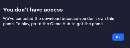 Hi, I tried installing NFS HP from the EA APP today, and I am facing the following error: Error Text: You don't have access We've canceled the download because you don't own this game. To play, ...
