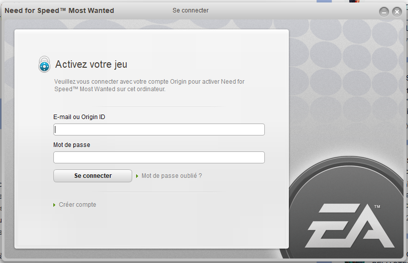 J'ai télécharger NFS most wanted via origin et quand je lance ;e jeu, une boite de dialogue s'ouvre indiquant le message suivants : impossible de se connecter aux serveur EA pour activer Need for Speed Most Wanted sur cet ordinateur en utilisant votre compte. Veuillez réessayer ultérieurement.