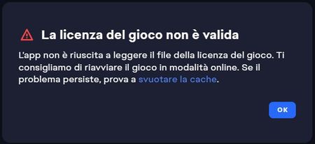 Se il codice inserito durante l'installazione non fosse stato corretto, avrei ottenuto questo messaggio: