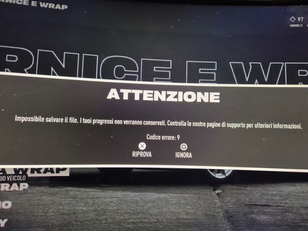 Anche a me è successo poi ha smesso per circa 3 settimane, oggi provando a mettere un wrap alla mia Ferrari 488 pista mi ha fatto vedere lo stesso messaggio che ha mostrato a te. Nonostante io abbia caricato i dati salvati nella archiviazione nel cloud di ps+ non è rimediato niente. Ecco la foto del messaggio che mi compare