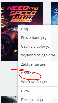 Kliknij prawym przyciskiem myszy na okładkę gry Need For Speed Payback i wybierz "Właściwości gry" po czym z zakładce "Zapisy gier w chmurze" odznacz pole odpowiadające za zapis gier i uruchom grę ponownie