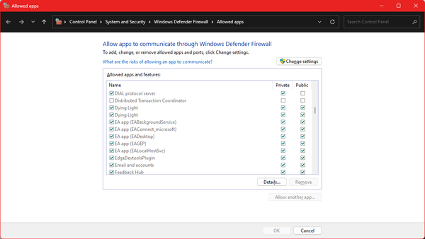 2. Dodaj EA app do wyjątków w zaporze sieciowej i programie antywirusowym