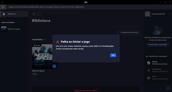 Erro de inicialização (Jogo não abre, apenas fecha e reabre o EA App)