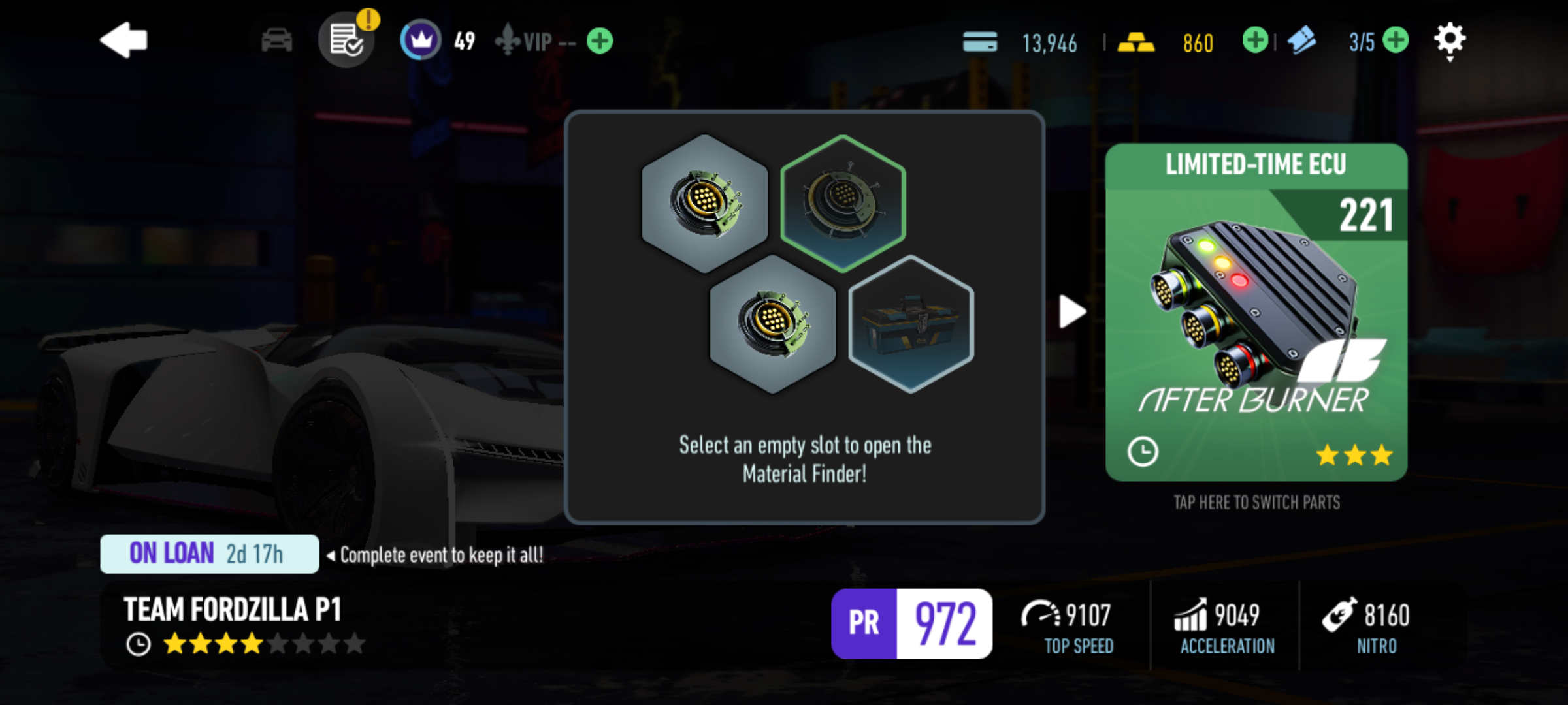 Attaching the screenshots of the exhausted parts slots for your reference. My race has come to a standstill right now, unless l spend real cash. This seems to be very unfair for the players as they cannot proceed in the race in Fordzilla.😌