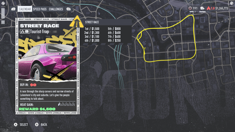 This is Friday (when I enter story mode)Only one event per meetupAfter doing that one race, I bank what I got (in yellow).After the game tries to switch to day, it's still night inside & out.Different meetup locations this time, but still only one event