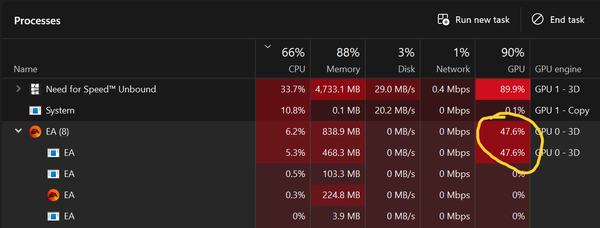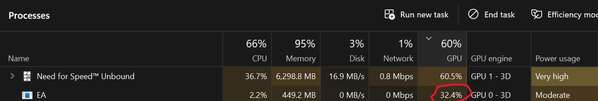 The EA app is using up my laptop's iGPU while I play and this leads to MASSIVELY increased CPU usage. When this issue occurs I get 80, 90%+ CPU usage in game (usually around 60%) and slowmotion issues everywhere. It's not malware, I use kaspersky and have scanned the PC, it also doesn't happen absolutely all the time but often, when I'm playing Unbound. Problem started maybe 6 weeks ago