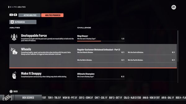 I couldn’t get anything from the last be a pro I did, but I’m on the season right after winning the cup and pacific division and it didn’t go towards the ability progress