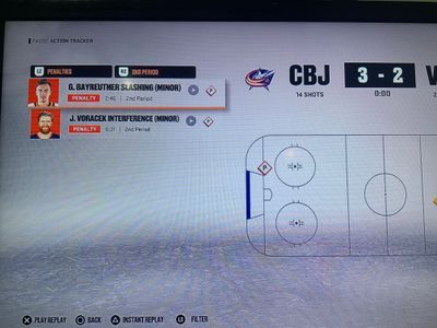 As you can see, 3 goals were scored late in the 2nd period (I simulated to my next shift) by my team and all appear to be empty netters since my team had 14 shots on goal and Vancouver’s goalie has apparently saved all 11 shots faced. Checking the penalties, none were called around the time of the goals scored until 29 seconds after the 3rd goal so it can’t be Vancouver scoring in their own net on delayed penalties (Imagine that!). I invite others to add more information to help EA recreate this, its only the 2nd time I’ve seen it