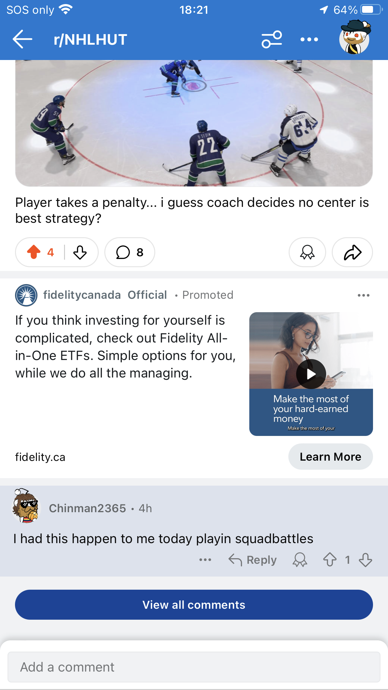 So the bug happened in 2nd period during the team of the week challenge on S mode. Sakic took a tripping penalty for the opposing team (center), and when I went to take faceoff no one was there. Perhaps the team lines didnt have a replacement player or something on their PK line?